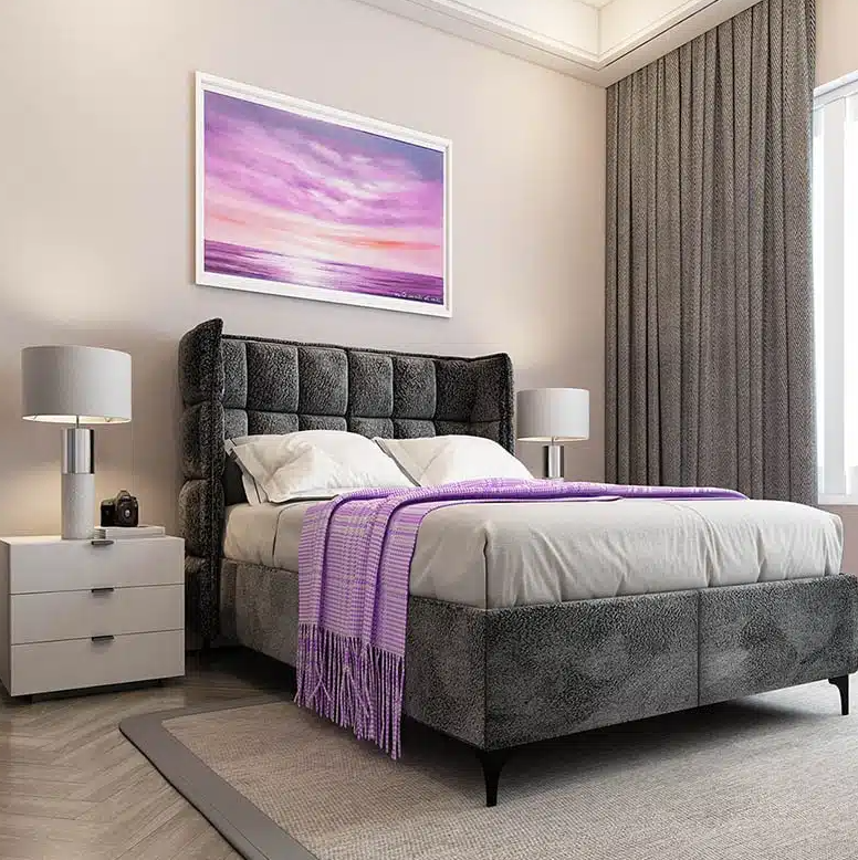 מיטה יהודית מפוארת מרופדת בד קטיפה דגם ג’יזל