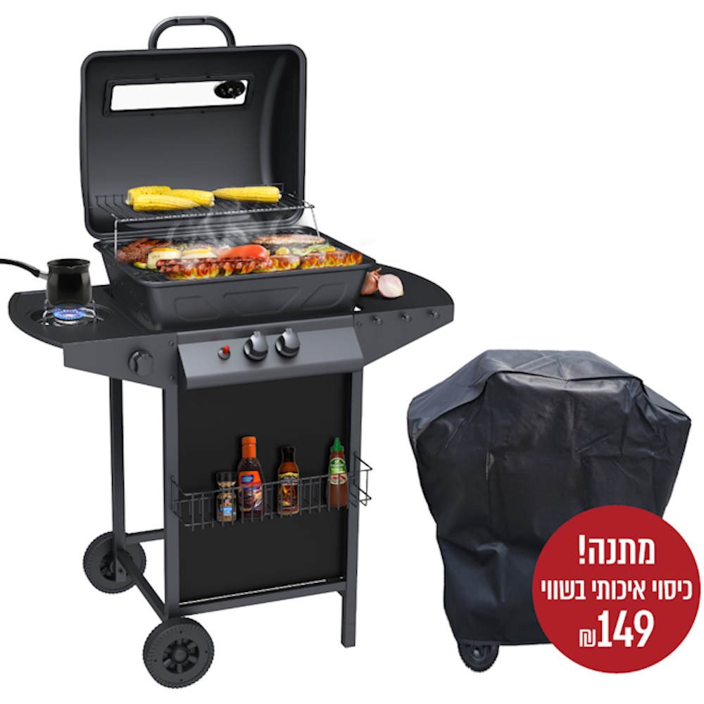 גריל גז 2 מבערים כולל כירת צד 28,000BTU + כיסוי איכותי מתנה Sirius Living סיריוס ליווינג