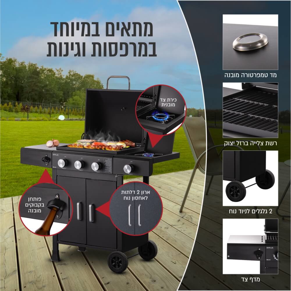 ניתן לניוד: הגריל מגיע עם 2 גלגלים לניוד ממקום למקום בצורה פשוטה ונוחה