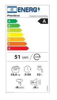 מכונת כביסה אינוורטר 12 קג 1400 סלד PRF120-F14102DA05e לבן פירלס Peerless