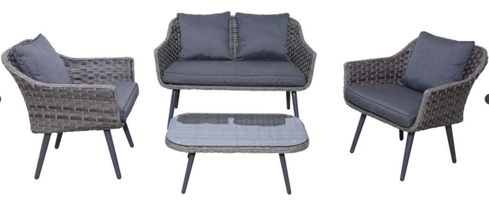 ערסל זוגי לגינה ולמרפסת ראטן דגם סלוניקי צבע אפור