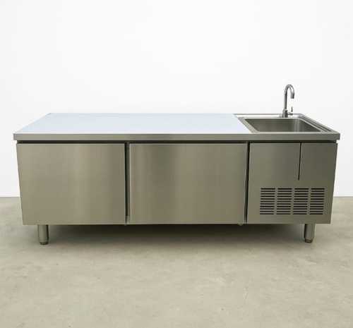 שולחן עבודה חכם הכולל גם אחסון מקורר וגם כיור מובנה – פתרון מושלם למטבחים מסחריים, קייטרינג, מסעדות ודוכני מזו