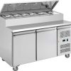 מקרר הכנות נירוסטה עם משטח עבודה נירוסטה עם סלטיה מובנת מתאים להכנת פיצות, סלטים וכד’…,