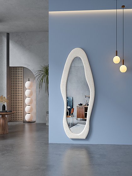 מראת גוף אמורפית סטנד ותלייה מסגרת בד בגוון לבן דגם פרול PEROL מבית סטאר שופ STAR SHOP