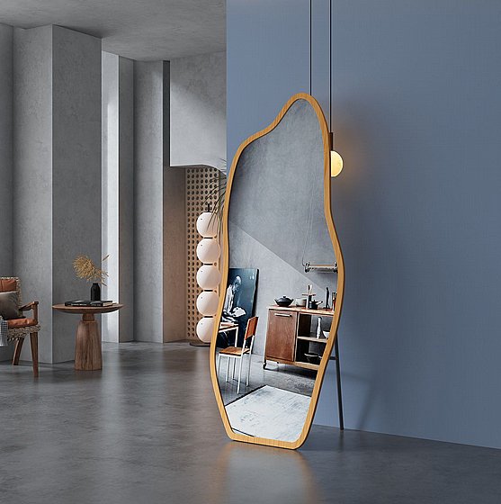 מראת גוף אמורפית סטנד ותלייה מסגרת עץ בגוון טבעי דגם ויגו VIGO מבית סטאר שופ STAR SHOP