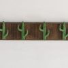 שלישיית מתלי קקטוס ממתכת ירוקה על לוח עץ צבוע במראה Wash כפרי ומשופשף. על זרועות הקקטוסים ניתן לתלות מעילים, תיקים, צעיפים ובכלל כל פריט לבוש. מתאים במיוחד לתלייה ליד דלת הכניסה לבית, או מאחורי דלת חדר השינה או חדר מתבגר.