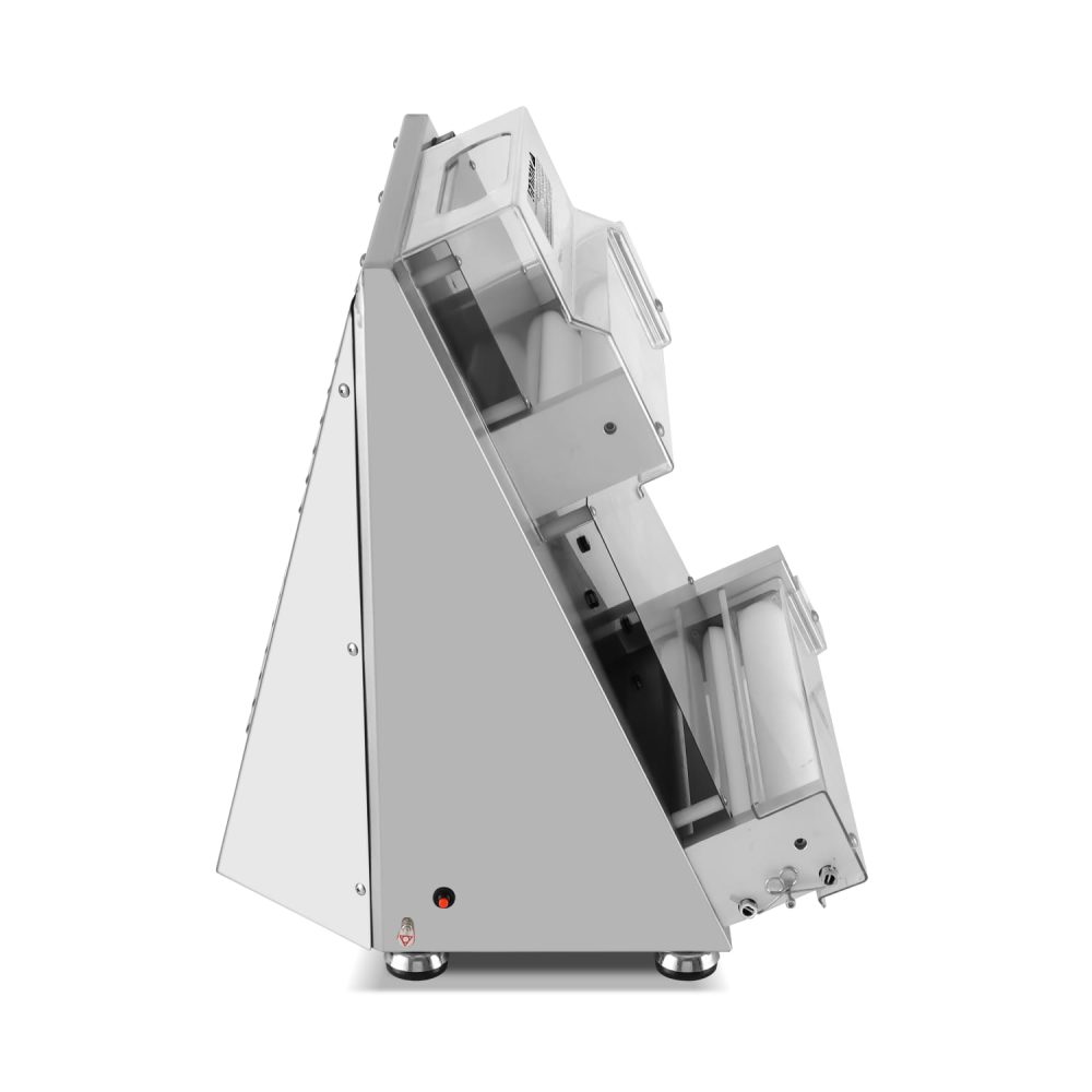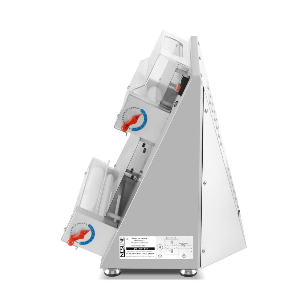 פותחת בצק מקצועית בעלת 2 גלגלים מקבילים עשויה נירוסטה איכותית, קוטר פיצה: 10-40 ס"מ, מידות: 370/565/715 מ"מ