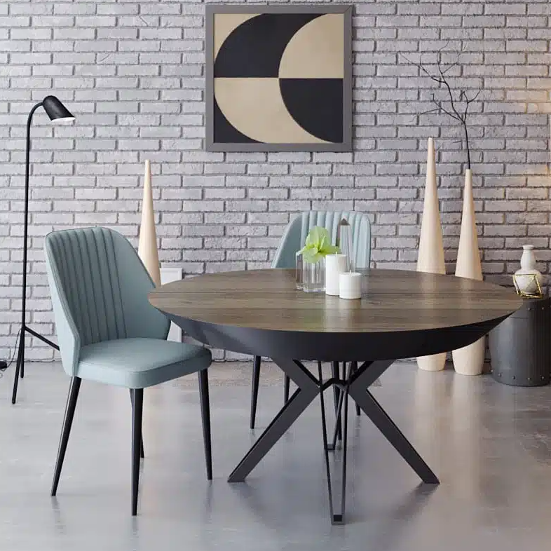 פינת אוכל עגולה נפתחת דגם אגוז אמריקאי + 6 כסאות