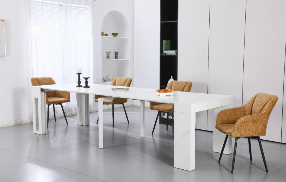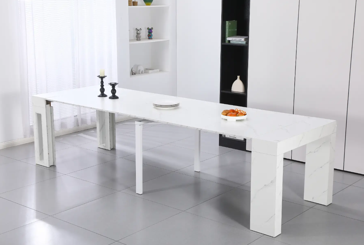 קונסולה נפתחת לפינת אוכל מדגם מקסימוס בצבע לבן עורקים הינו הפיתרון המושלם והפרקטי ביותר שאפשר לחשוב עליו