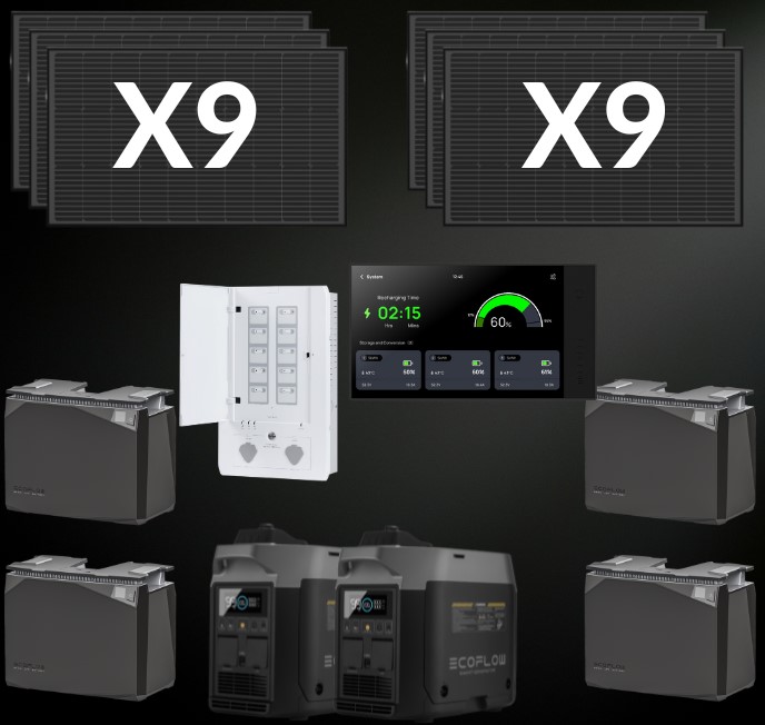 מוצר: קיט מערכת סולארית ביתית ECOFLOW POWER KIT 7200/12000W 20Kwh – סולארי 9720W + סט 2 גנרטורים חכמים