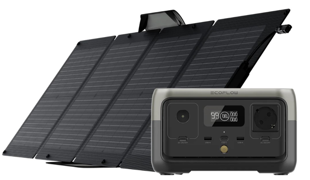 קיט סולארי ECOFLOW – תחנת כח RIVER2 LIFEPO4 קיבולת 0.256Kwh -הספק 0.3-06KW טעינה מהירה פאנל סולארי מתקפל 110W – ניוטק