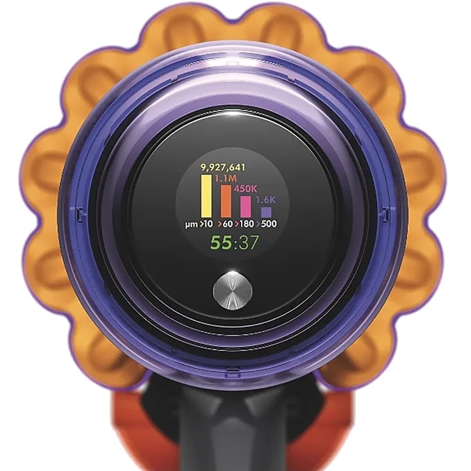 צג LCD בראש השואב מציג את כמות וסוג החלקיקים הנשאבים, כהוכחה מדעית לכך שהבית נקי באופן יסודי.