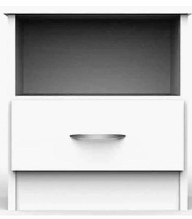 שידת לילה מעוצבת עם מגירה נשלפת ותא פתוח מאפשרת לך לשמור על סדר וארגון בחדר השינה.