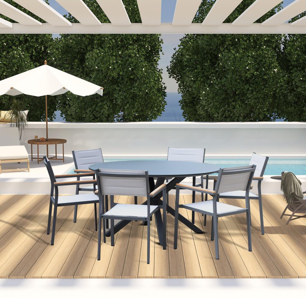 מידות השולחן: קוטר – 120 ,  גובה – 75 ס”מ.