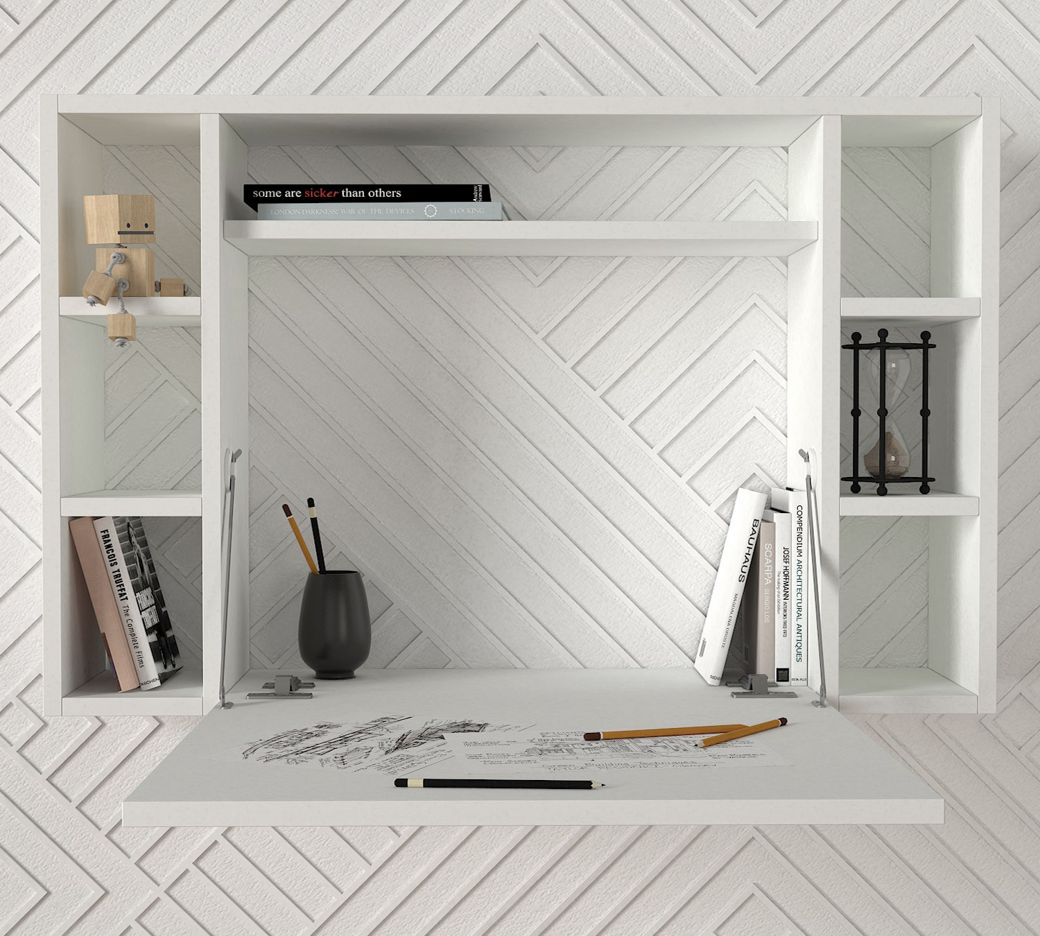 החדר עמוס ואין לכם מקום פנוי? איסטה DE5300 היא עמדת עבודה נפתחת וקומפקטית, מותאמת לחדרי ילדים, משרד או סלון. היא תלוייה על הקיר והשולחן שלה נפתח כלפי מטה. כשלא בשימוש, העמדה מתקפלת חזרה ואינה תופסת מקום מיותר. בשולחן ישנם 7 תאי אחסון בסגנון כוורת לנוחות ועיצוב.