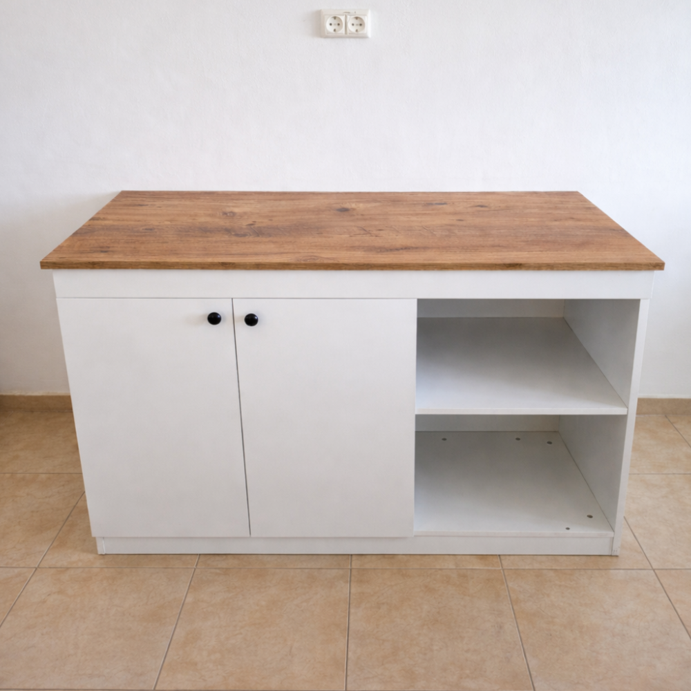 האי בנוי בצורה יציבה מסיבית בציפוי מלמין, קל לניקוי, חזק לשימוש יומיומי ומתאים גם למטבחים קטנים וגם לחללים פתוחים.