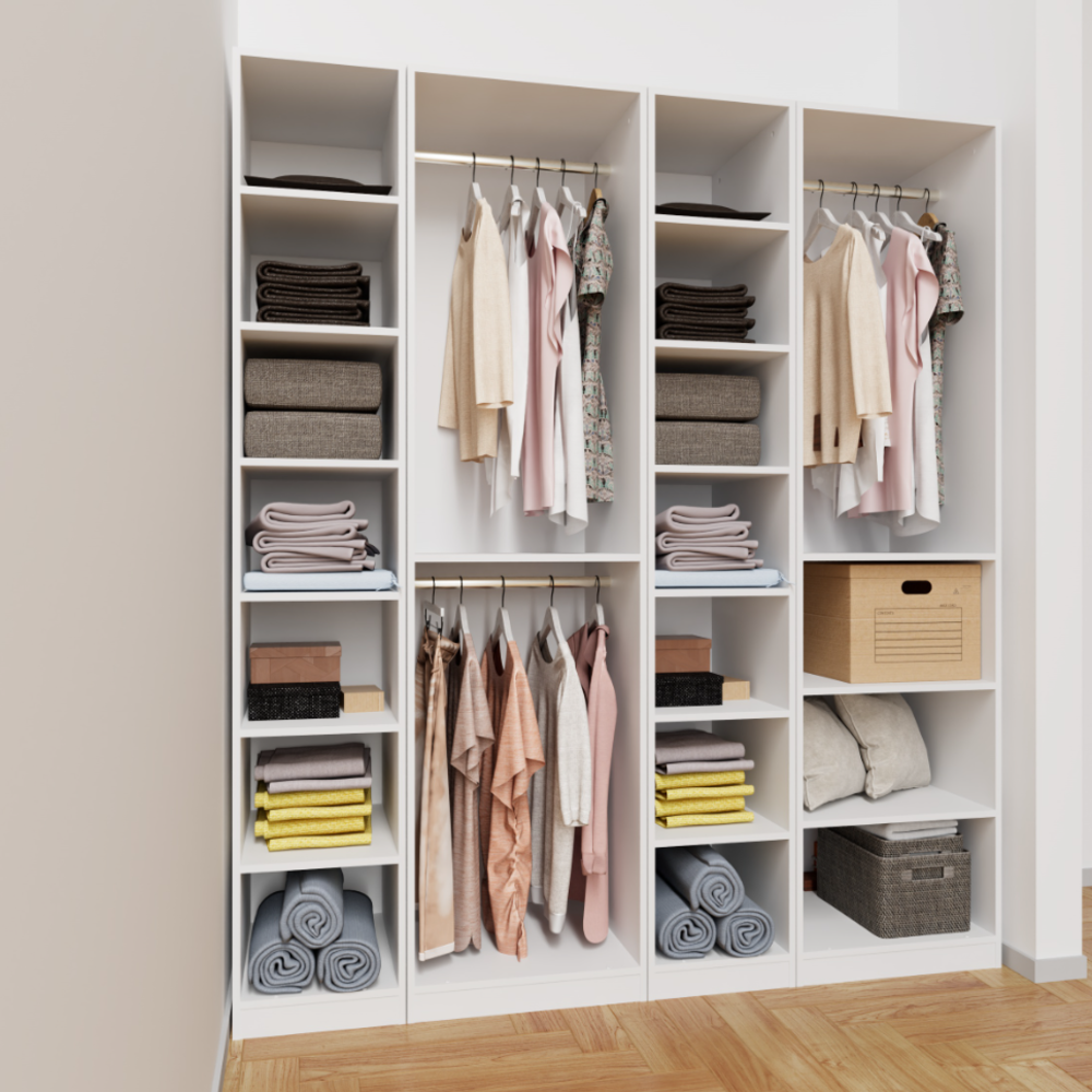 ✔️ גמישות מרבית – כל ארון בסדרה מגיע עם חלוקה פנימית שונה – לבגדים, נעליים, קופסאות או מגבות – ואתם יכולים לבחור ולשלב ביניהם לפי הצורך שלכם.