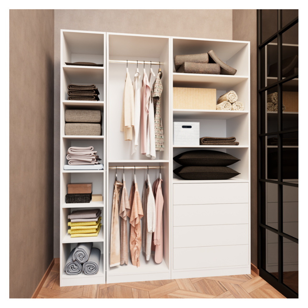 ✔️ גמישות מרבית – כל ארון בסדרה מגיע עם חלוקה פנימית שונה – לבגדים, נעליים, קופסאות או מגבות – ואתם יכולים לבחור ולשלב ביניהם לפי הצורך שלכם.