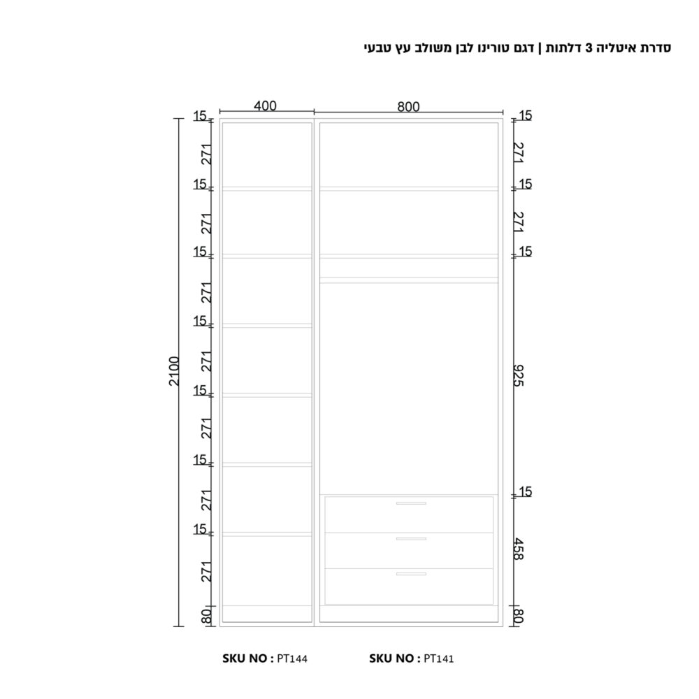 - חלוקה פנימית חכמה עם מדפים, מגירות ותלייה
