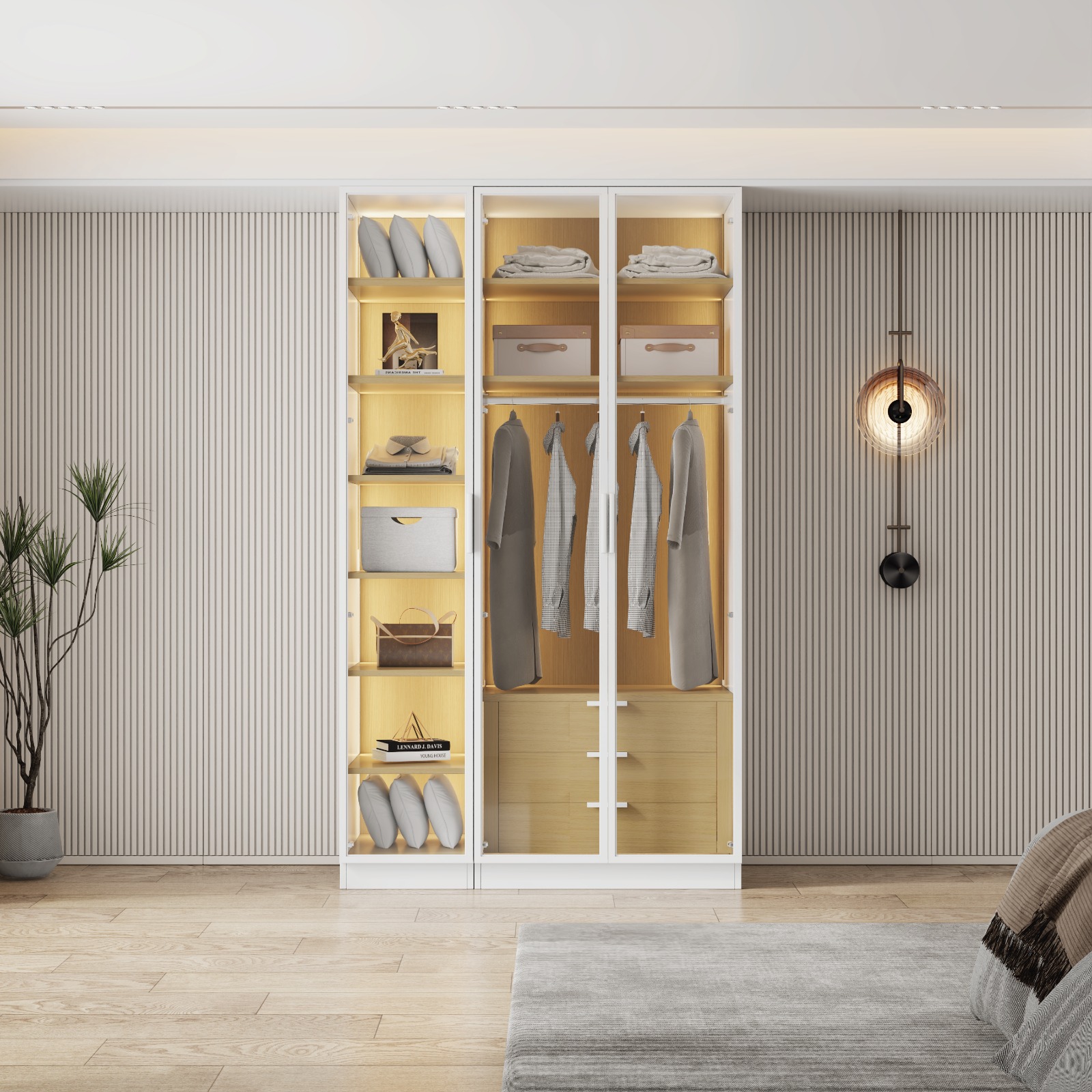 ארון בגדים 3 דלתות זכוכית עם תאורת LED