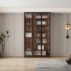 - ארון עץ בסגנון מודרני עם דלתות זכוכית שקופות ומסגרת אלומיניום אלגנטית.