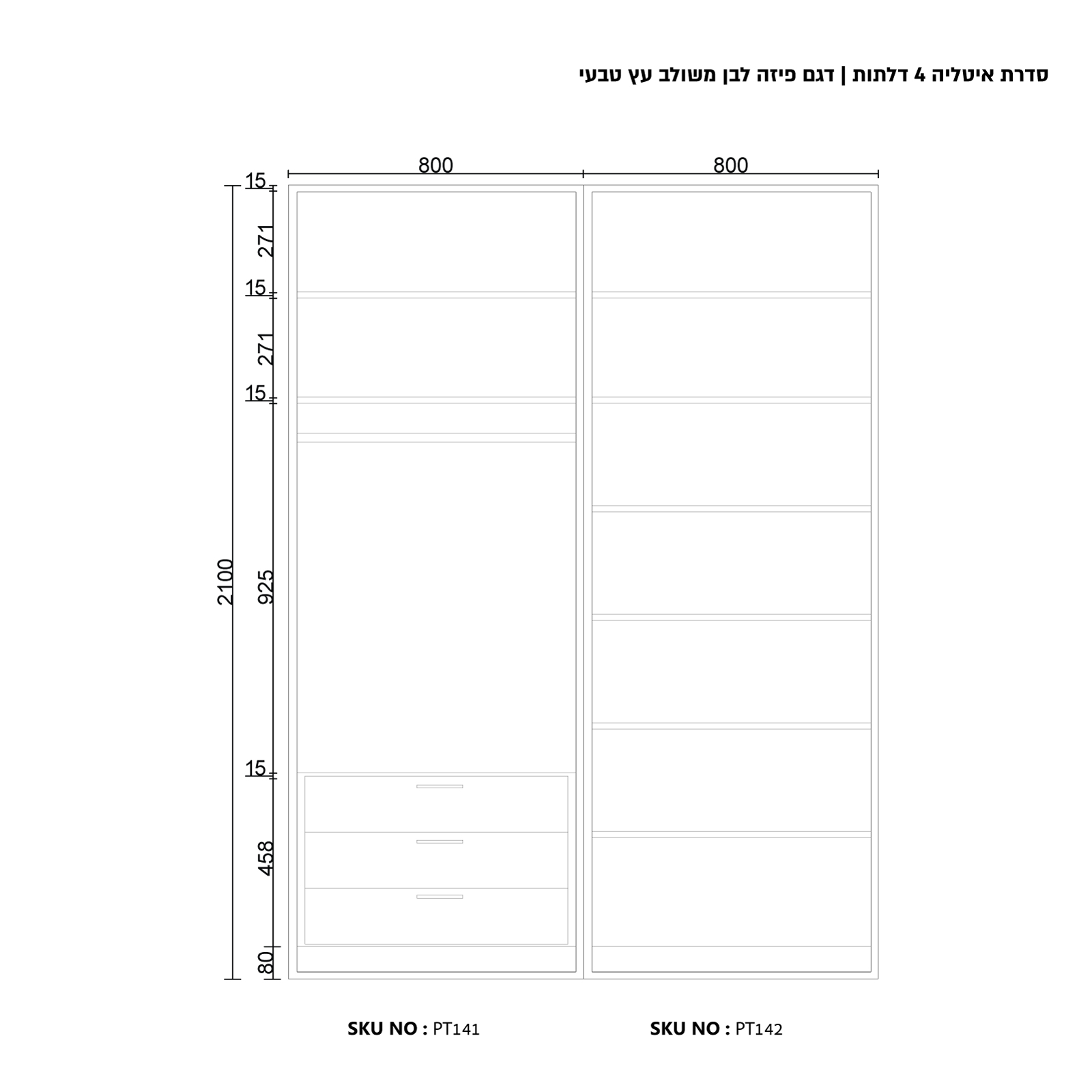 - ידיות וצירים: מתכת עם גימור יוקרתי ומנגנון טריקה שקטה.