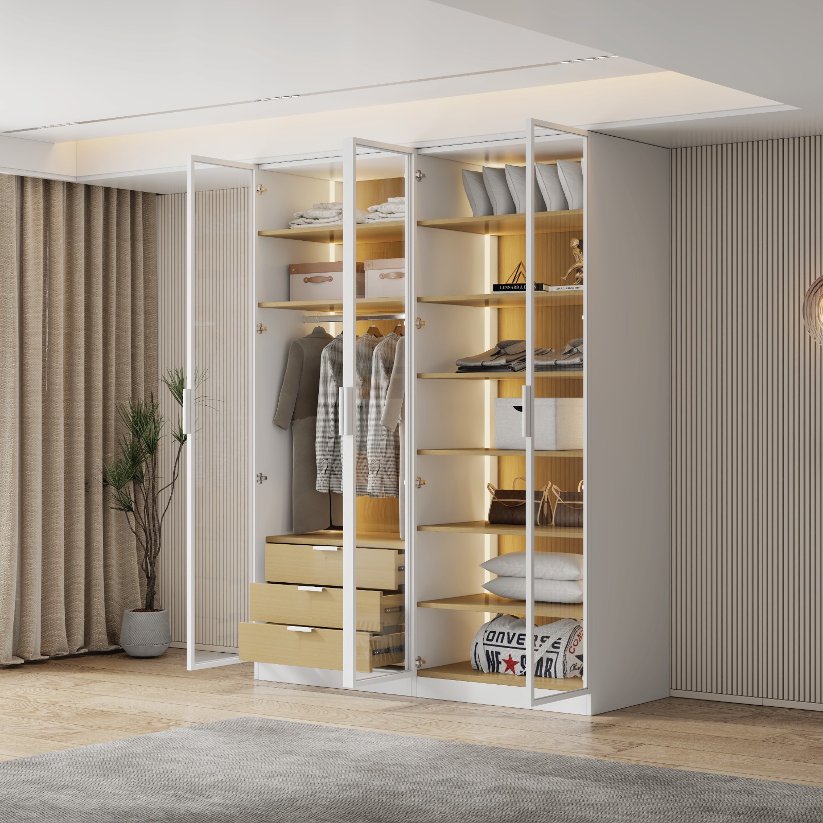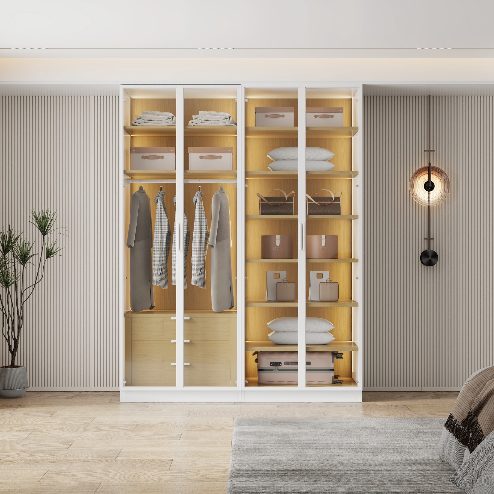 ארון בגדים 4 דלתות זכוכית עם תאורת LED