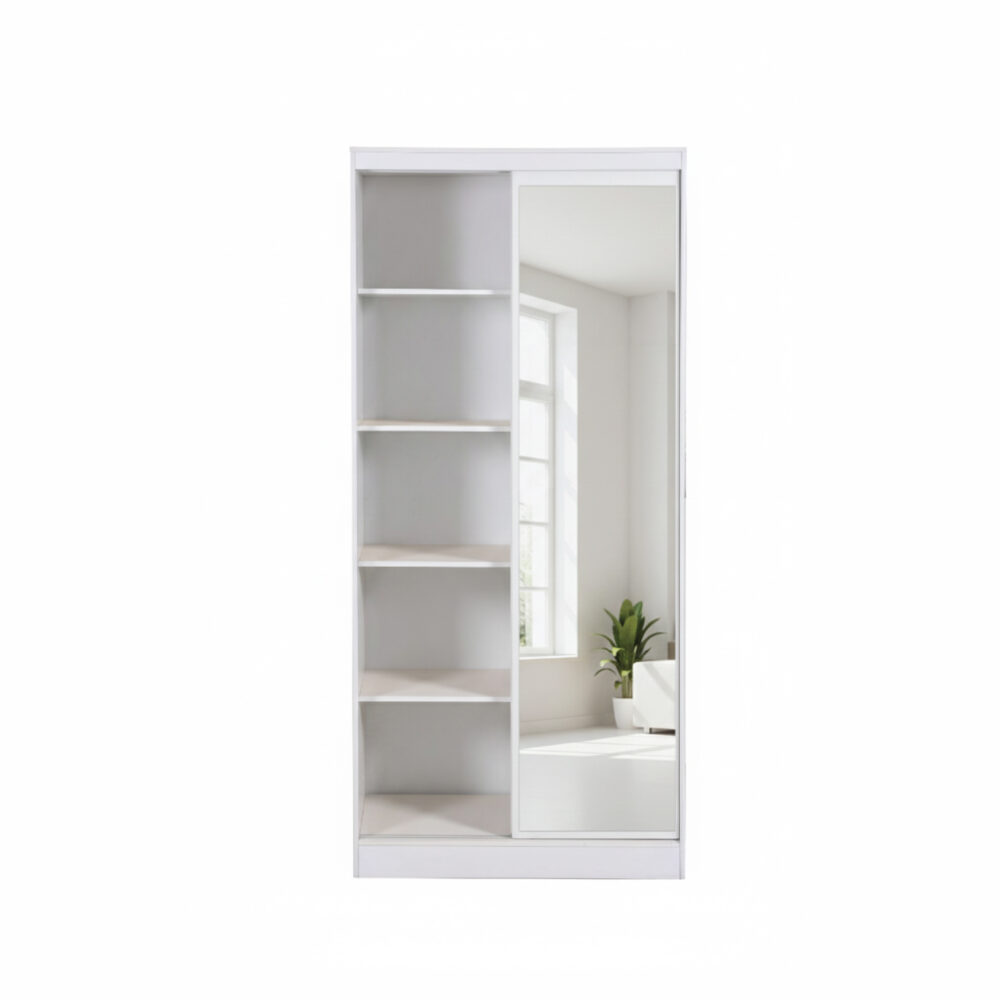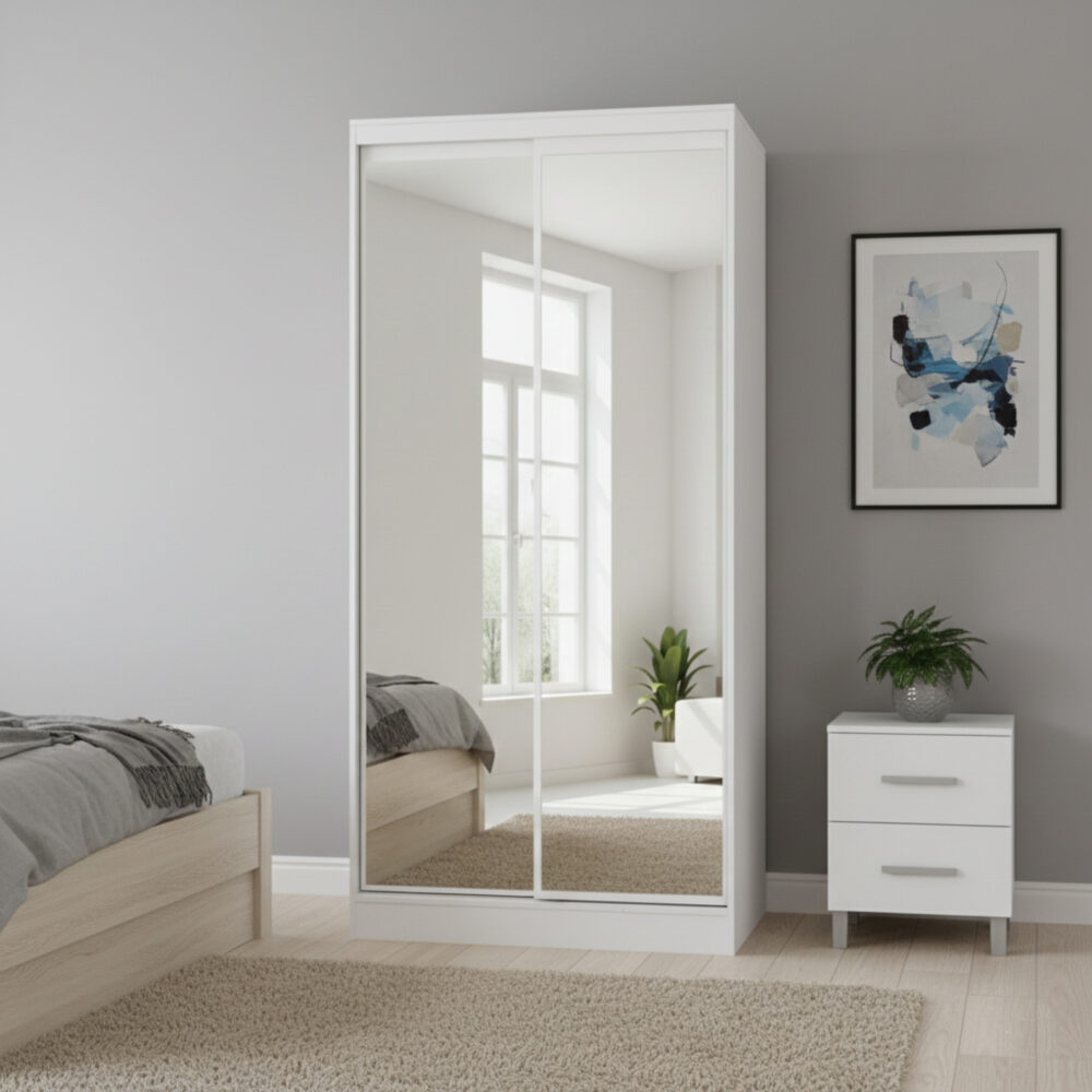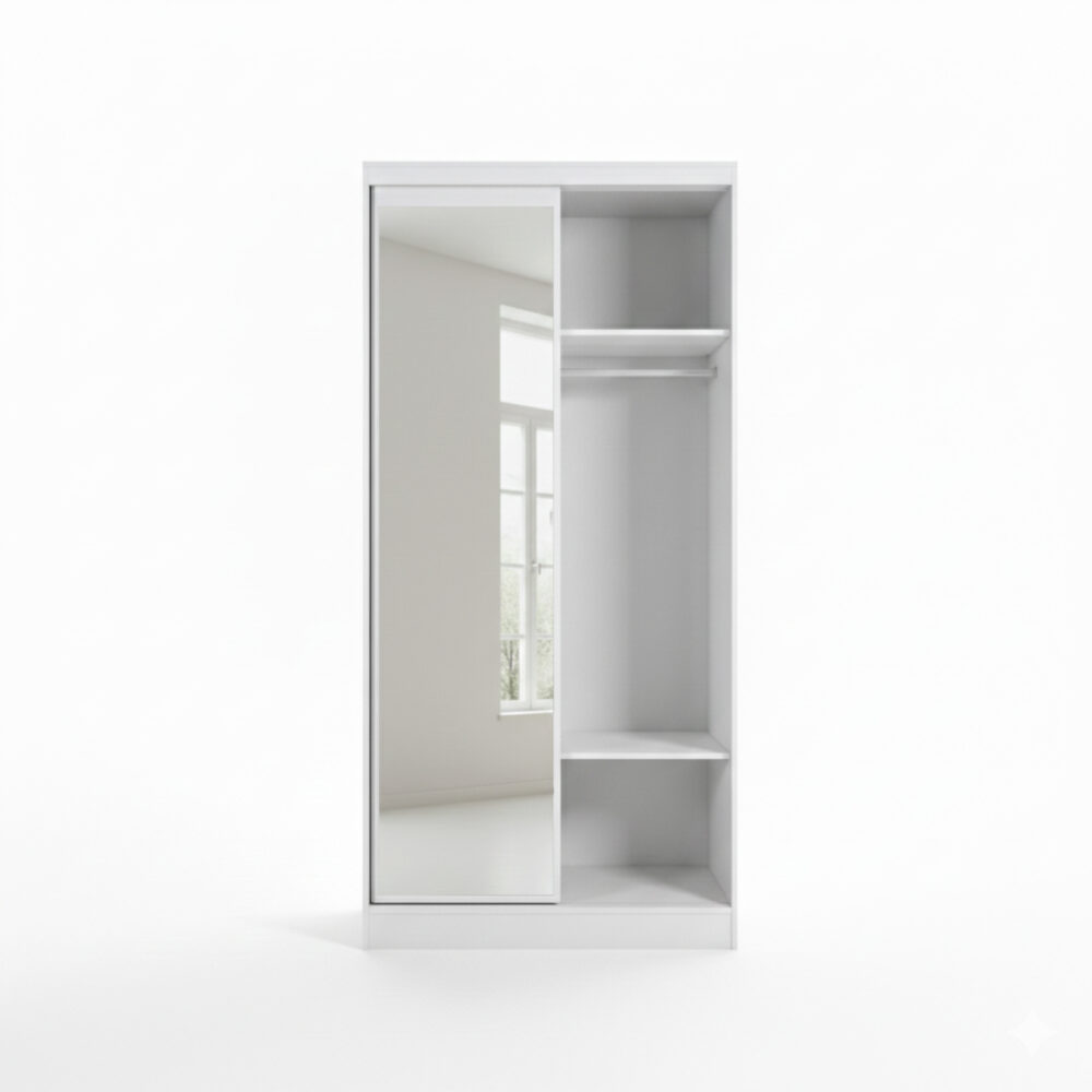 • מראה נקי עם דלתות הזזה בצבע לבן.