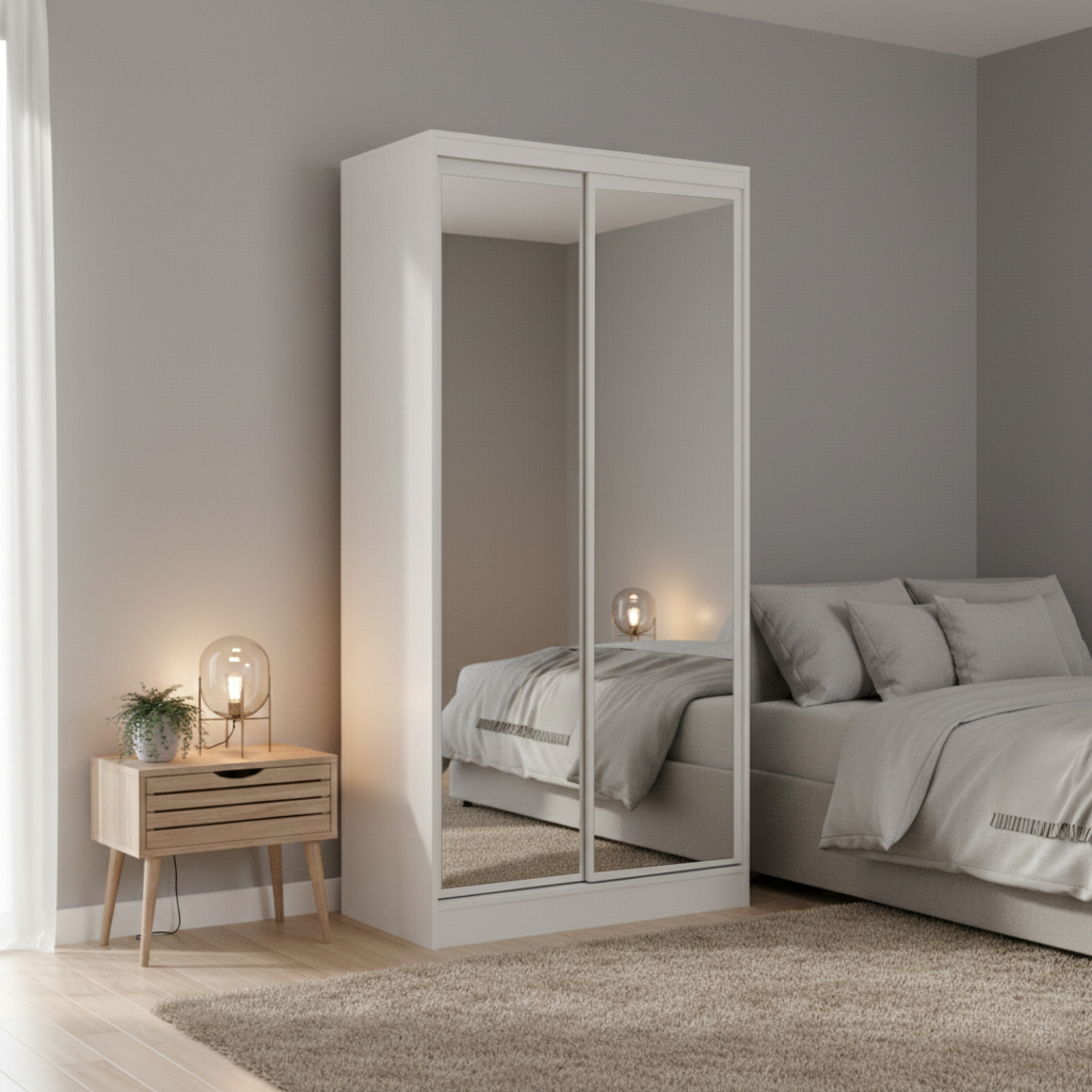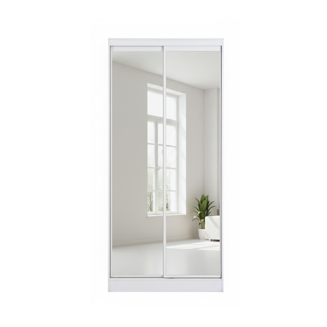 • מראה נקי עם דלתות הזזה בצבע לבן.