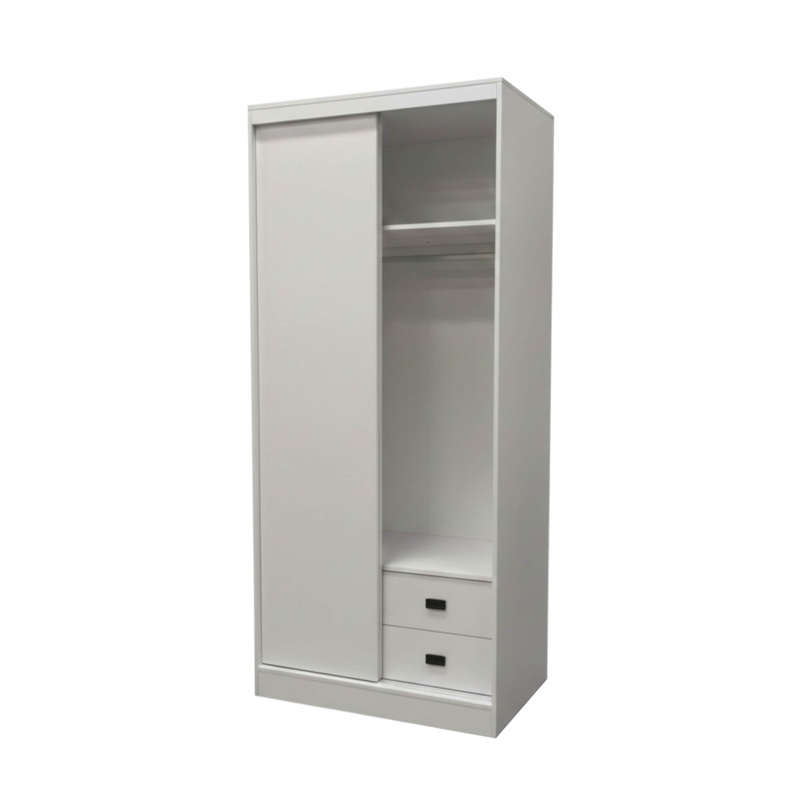 ארון הזזה דגם מיאמי של WOODY, בעיצוב מינימליסטי ויוקרתי, כולל 2 דלתות הזזה. מציע חלוקה פנימית עם מדפים ומוט תלייה. אפשרות להוספת מגירות ומדפים להתאמה אישית. מיוצר מחומרים עמידים עם פרזול שקט וקל לתפעול.