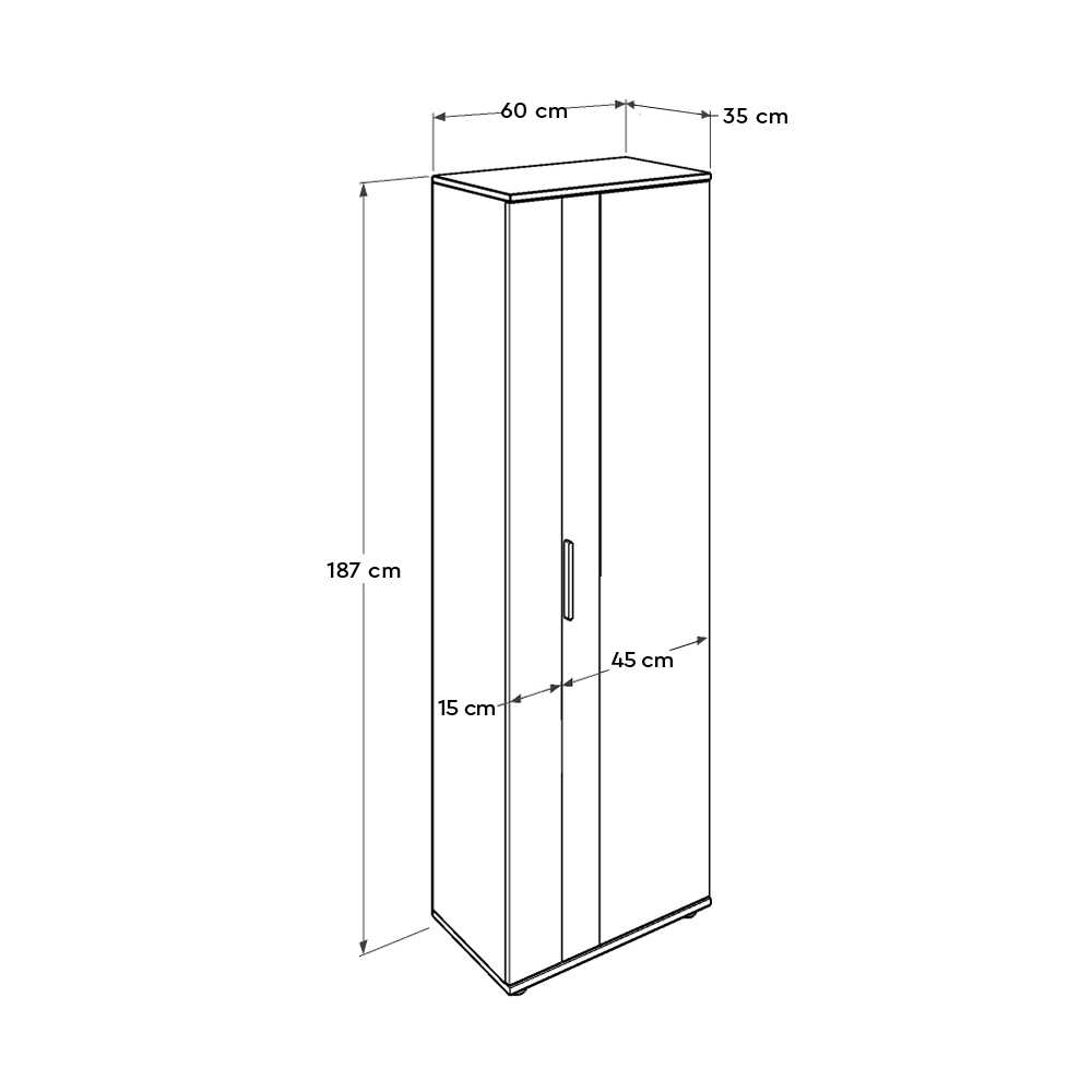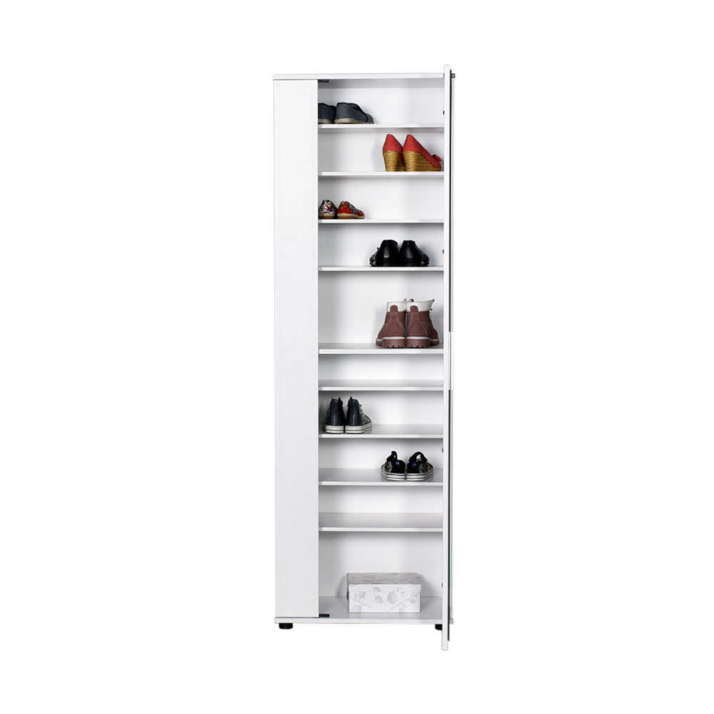 תיאור: ארון מדפים פונקציונאלי עם עיצוב נקי ואקסקלוסיבי. מתכוונן ומותאם לצרכים משתנים, כולל מראה ענקית על אחת הדלתות. אידיאלי לשימוש כארון נעליים, ארון בגדים או שירות.