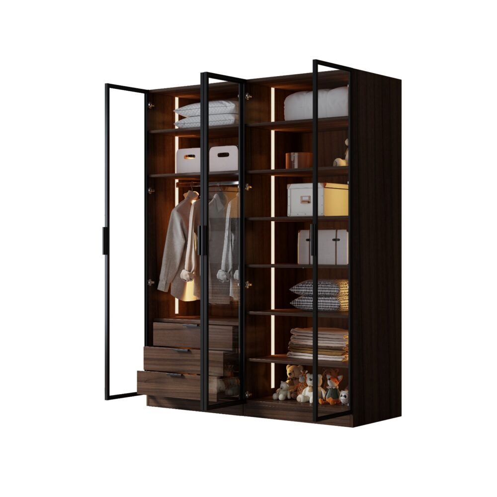 • כולל 3 מדפים סגורים ו-3 מדפים פתוחים לאחסון מגבות ושאר פריטים.