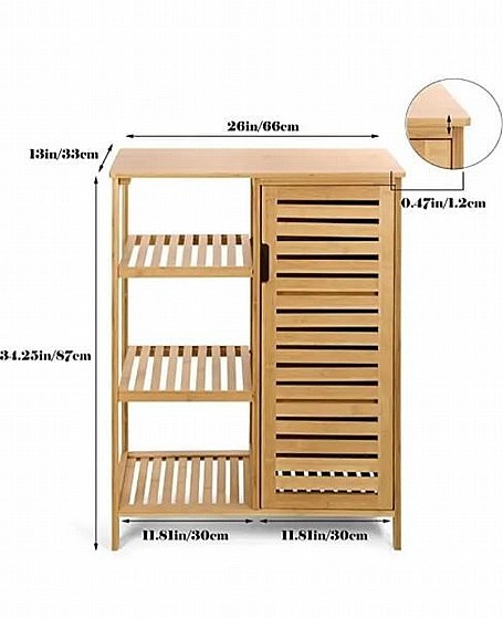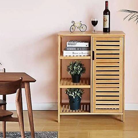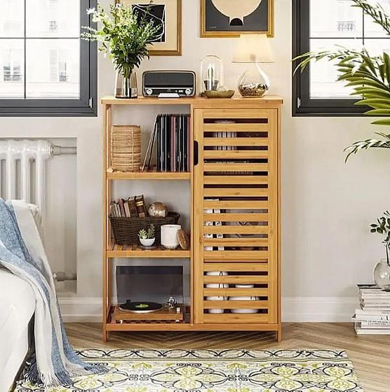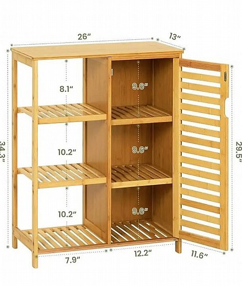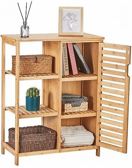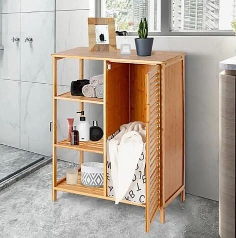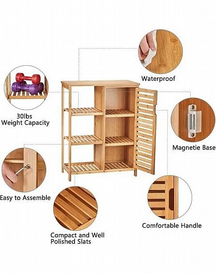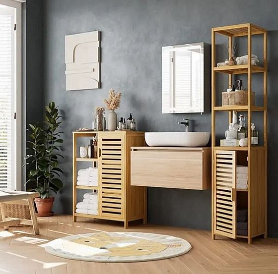 ריהוט במבוק 2026 מציע ארון שירות עשוי מבמבוק טבעי ועמיד בפני לחות, עם 3 מדפים סגורים ו-3 פתוחים, אידיאלי לאחסון בחדר האמבטיה או המטבח. הריהוט קל לניקוי וידידותי לסביבה, ומוסיף אלגנטיות למרחב.