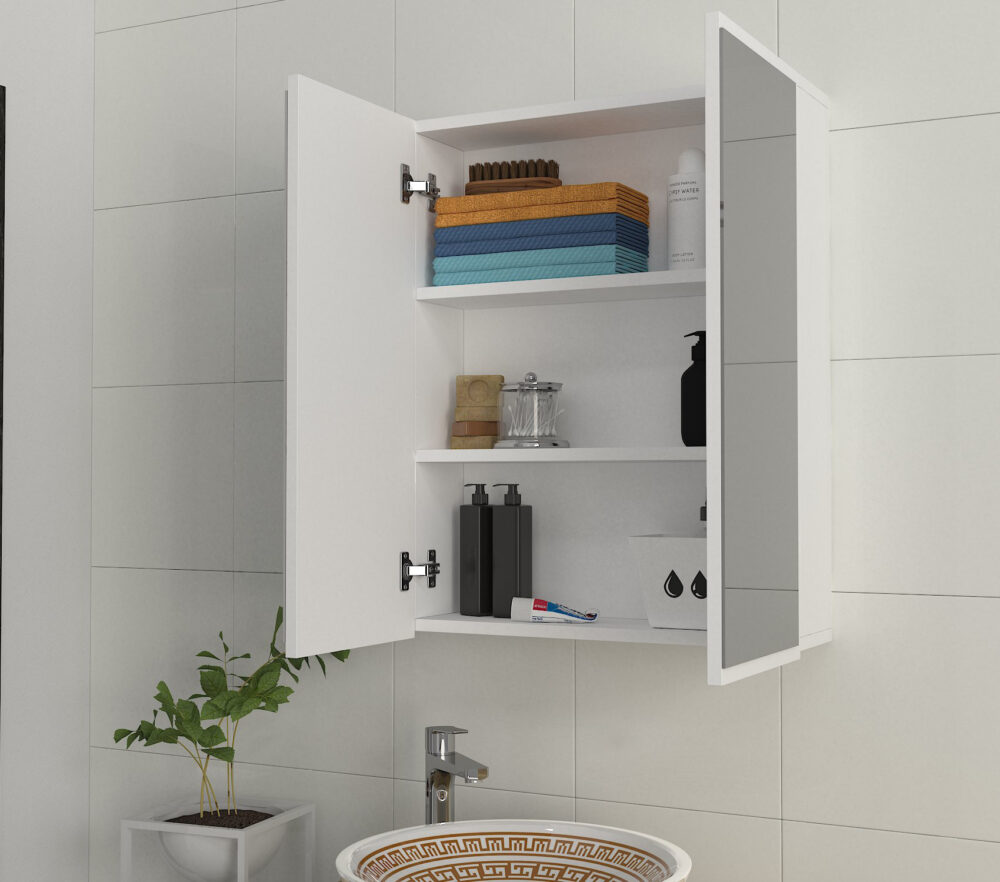 מבית HOMAX, ארונית בעיצוב נקי, נוחה ושימושית במיוחד לאחסון כלי רחצה.