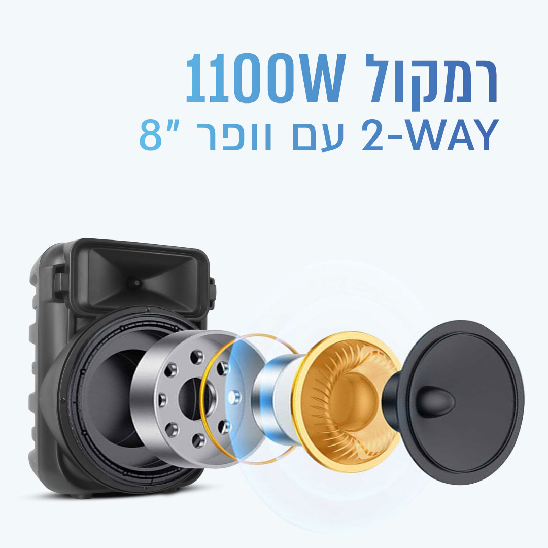 • סוללה נטענת – עם קיבולת 2200mAh לשימוש ברמקול באופן נייד לאורך שעות