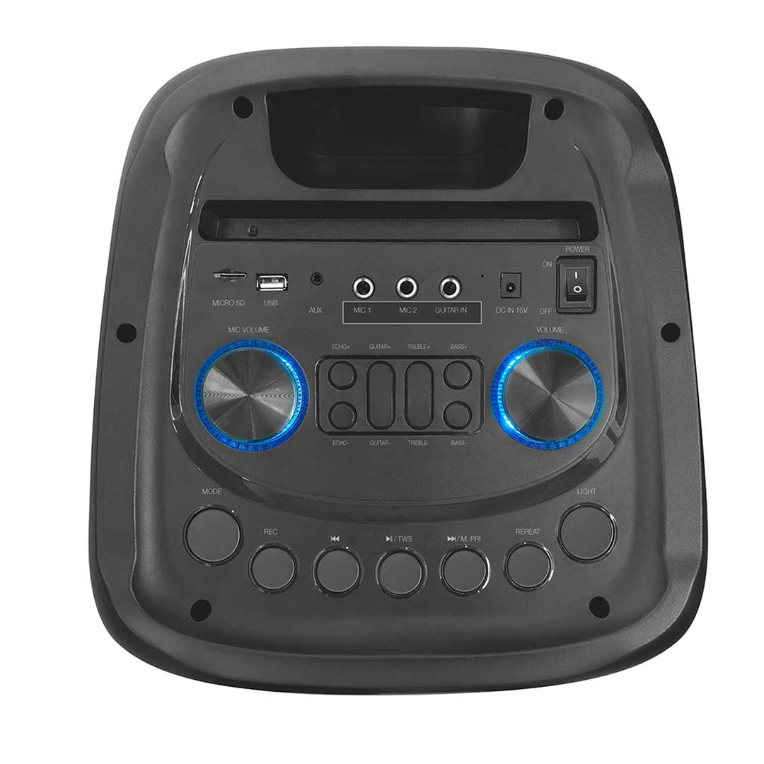 - מיקרופונים – 2 מיקרופונים אלחוטיים, כניסת מיקרופון חוטי, בוררי שליטה לווליום אקו