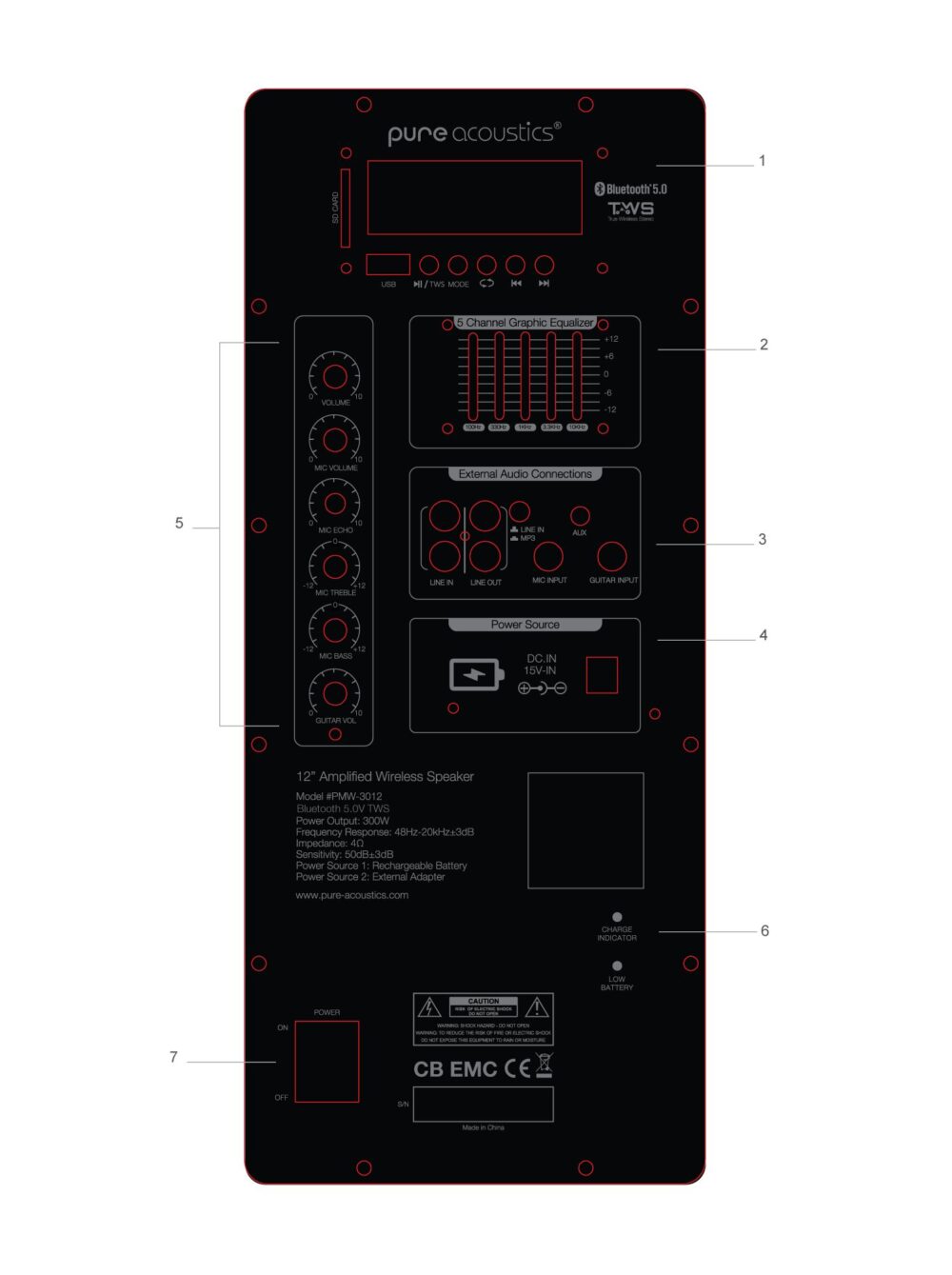 4 אפשרויות חיבור – Micro SD, AUX, USB ובלוטוס לסמארטפונים וטאבלטים TWS – חיבור 2 זוגות רמקולים למקור שמע אחד באופן אלחוטי, מה שמעניק לכם חווית סראונד עוצמתית ואיכותית צג דיגיטלי – המציג את שם השיר, תחנות הרדיו, מצב הסוללה ועוד בלוטוס 5.0 – הזרמת מוזיקה באופן אלחוטי לרמקול רדיו FM – טיונר דיגיטלי הכולל סריקה אוטומטית ושמירה עד 40 תחנות Mic priority – פונקציה להנמכת המוסיקה אוטומטית בזמן דיבור במיקרופון אקולייזר גרפי 5 ערוצים – 5 טווחי תדר סאונד לכיוון מדויק של סאונד בס וטרבל – שליטה על בוררי בס וטרבל להתאמה מלאה של הסאונד יציאת LINE OUT – לחיבור רמקול נוסף עם אותו מקור שמע שתי כניסות PL – כניסת גיטרה וכניסת מיקרופון חוטי 2 מקורות כוח – סוללה ליתיום מובנת ושנאי חיצוני ידית אחיזה טלסקופית – נוח לנשיאה ולהעברה ממקום למקום שלט רחוק IR – שליטה מלאה ונוחה על כל הפונקציות הרמקול סוללה נטענת – המאפשרת שימוש עד 15 שעות ניגון 7000mAh חיווי מצב סוללה ע”י 4 נורות לד rn