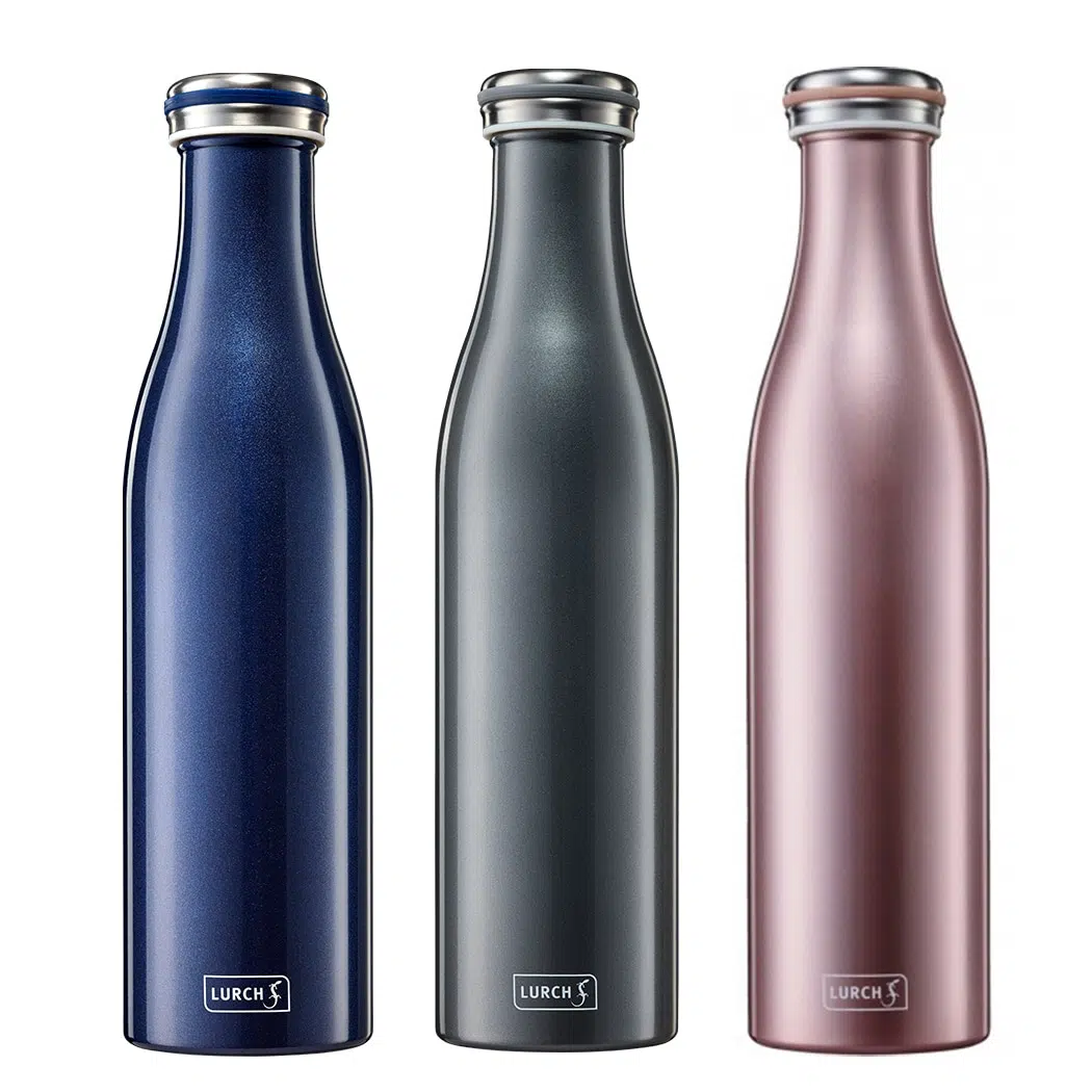 בקבוק נירוסטה איכותי של המותג הגרמני Lurch בנפח 750 מ"ל, המציע שמירה על טמפרטורת המשקה עד 12 שעות. נטול רעלים ובעל עיצוב צר, מתאים לכל תרמיל ומחזיק גביעים ברכב. אידיאלי לחובבי איכות ונוחות בדרכים.