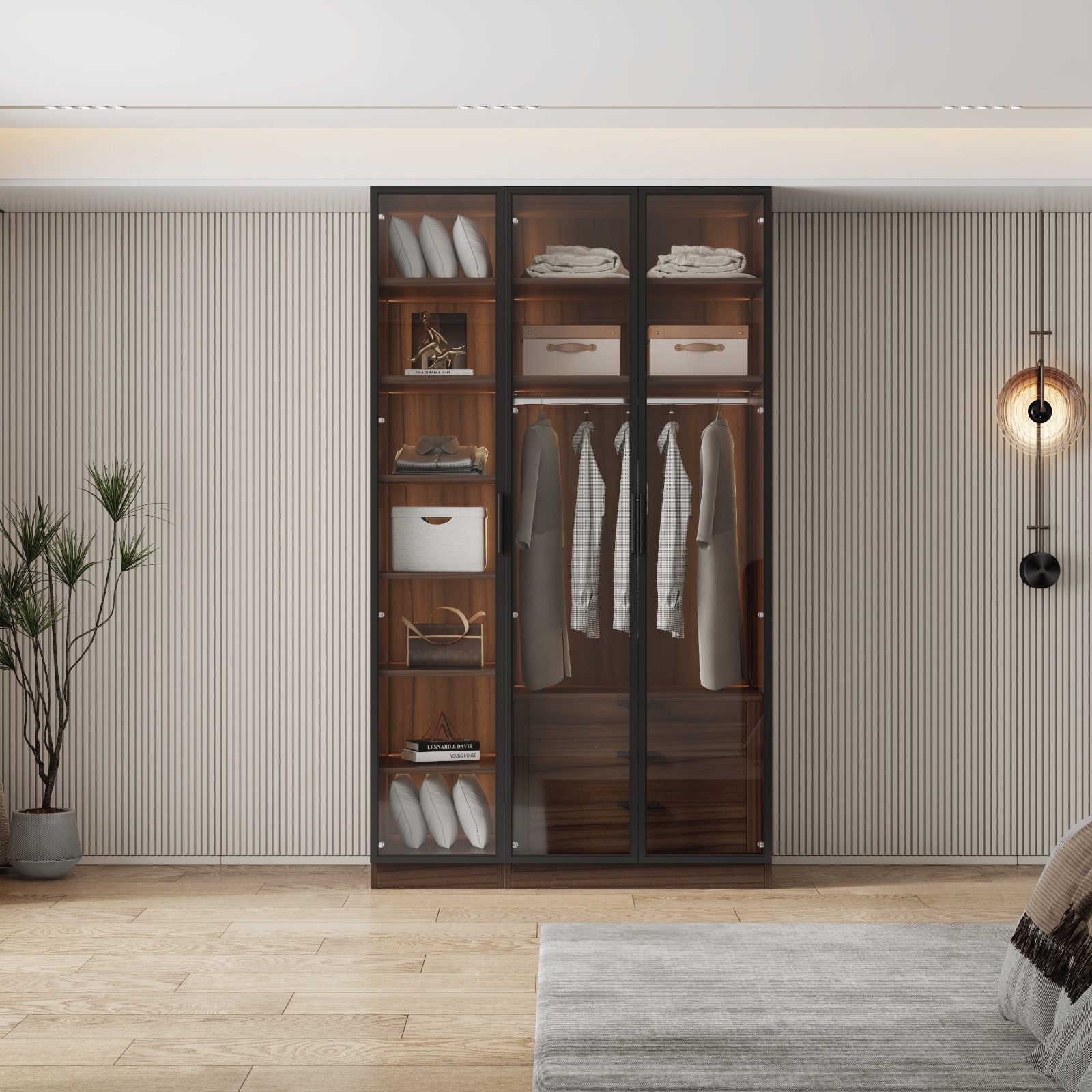 ארון בגדים 3 דלתות זכוכית עם תאורת LED – סדרת איטליה דגם טורינו