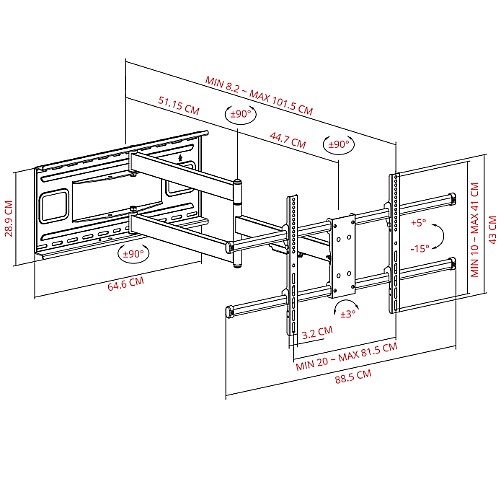 זרוע ארוכה במיוחד המאפשרת סיבוב מסך 52 אינץ' ב- 90° (למסכים עד רוחב 120 ס"מ).