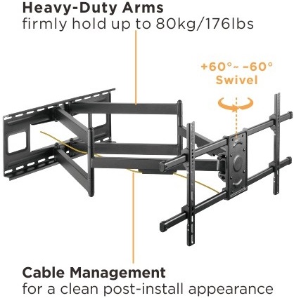 - תואמת לרוב המסכים הדקים עד 90 אינטש