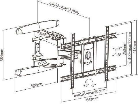 - ניתן למתוח את הזרוע עד 51.7 ס"מ מהקיר