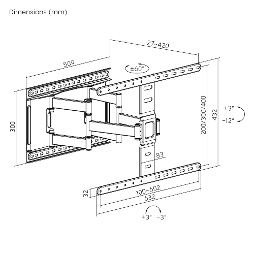 - מותאמת לתקני VESA שונים: 100×200 עד 600×400