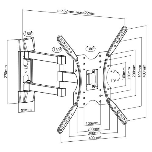- ניתן למתוח את הזרוע עד 42.2 ס"מ מהקיר