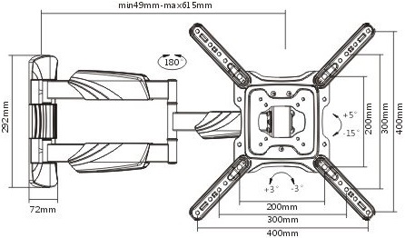 • מרחק מהקיר: מינימום 4.9 ס"מ, מקסימום 61.5 ס"מ