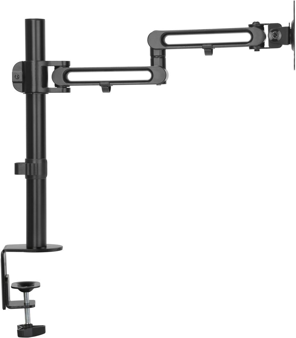 זרוע אלומיניום מסוגננת למשרד או לבית, מספקת התאמה גמישה של זווית וגובה המסך לחוויית צפייה מושלמת. קלה להתקנה עם קיבולת עד 8 ק"ג ותאימות למפתחות ברגים 75X75, 100X100.