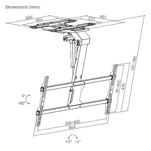 - ירידה גמישה: 0° עד –80° לצפייה נוחה.