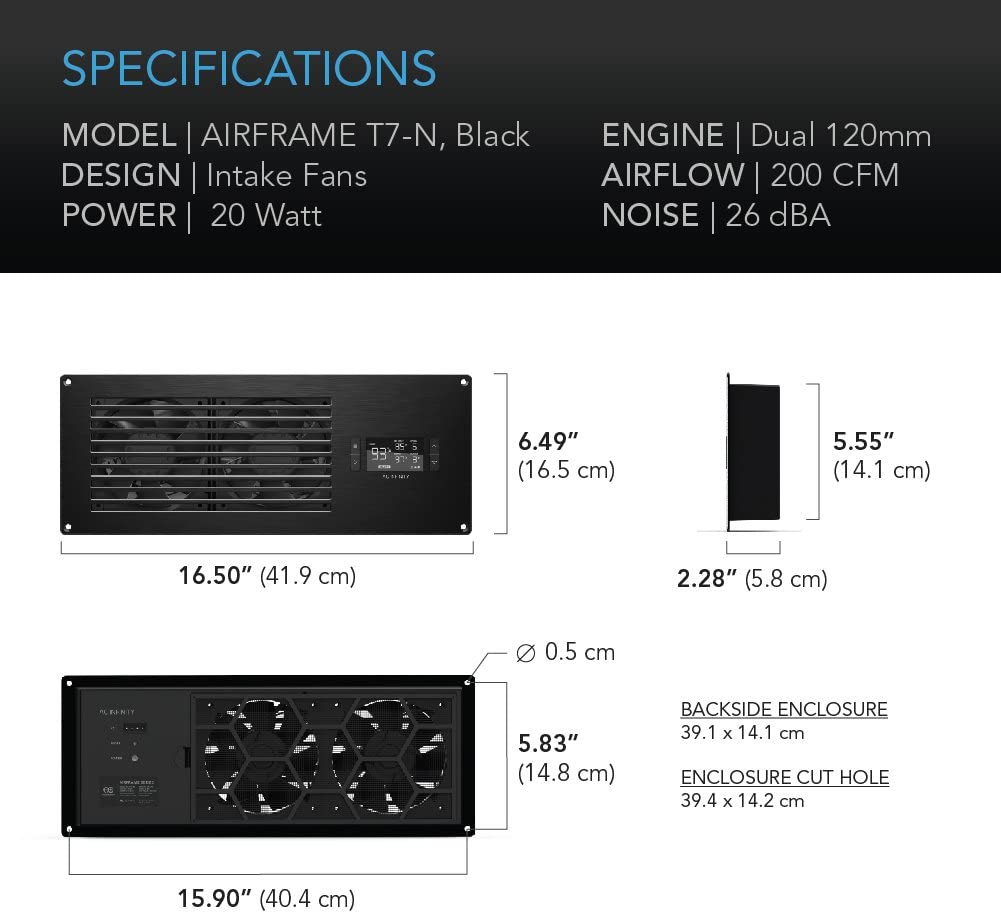 מתאימה להתקנה על דלתות או קירות ארונות ציוד, חדרים וארונות גדולים. עם דירוג זרימת אוויר של 200 CFM לקירור ארונות AV קטנים.