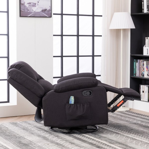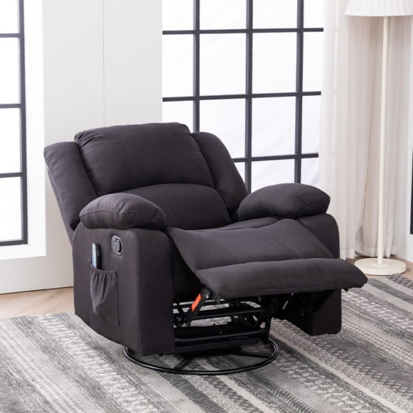 מערכת עיסוי ושליטה על הריקליינר: ריקליינר נשלף ידנית מרופד ומפנק לרגליים. נפתח לזווית 145 מעלות. שלט רחוק מלא לשליטה על מערכת העיסוי: 5 פעולות עיסוי, 2 עוצמות, טיימר ופינקצויית חימום