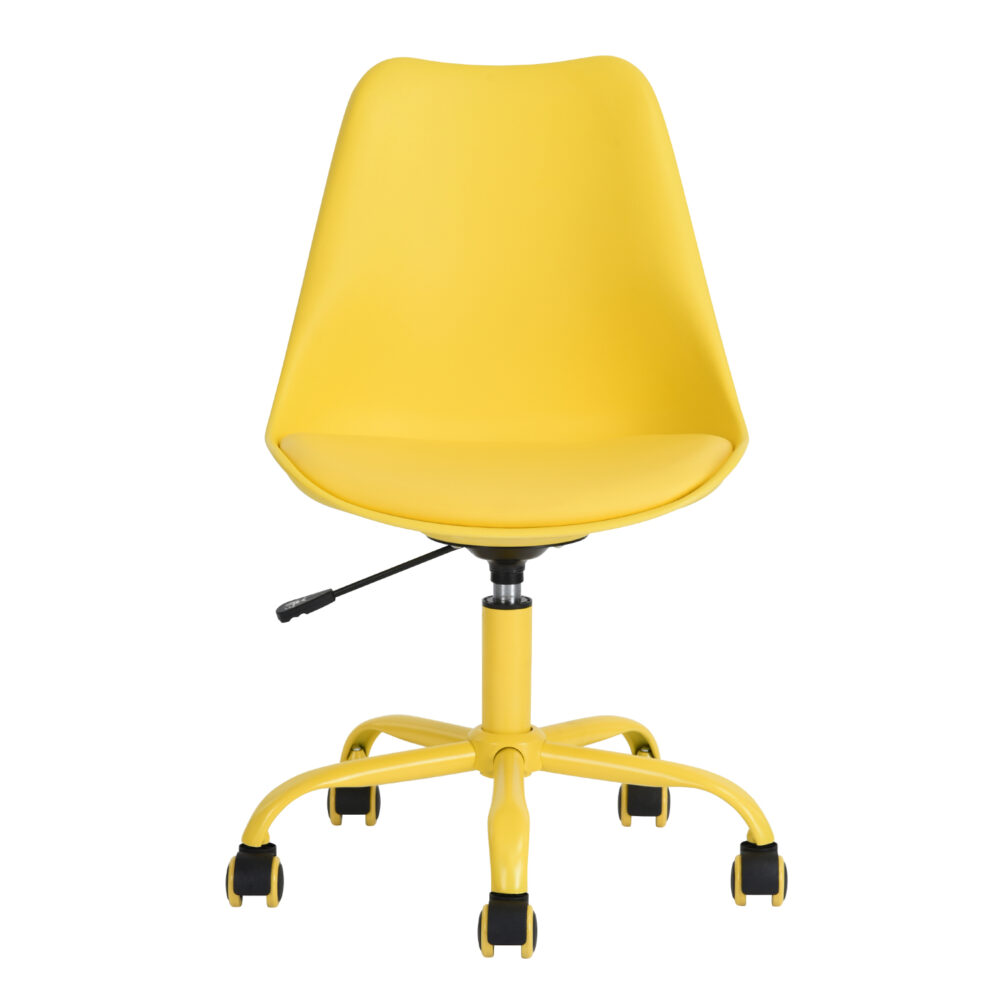 - בסיס מתכת איכותי עם גלגלים מעוצבים בגוון הכיסא.